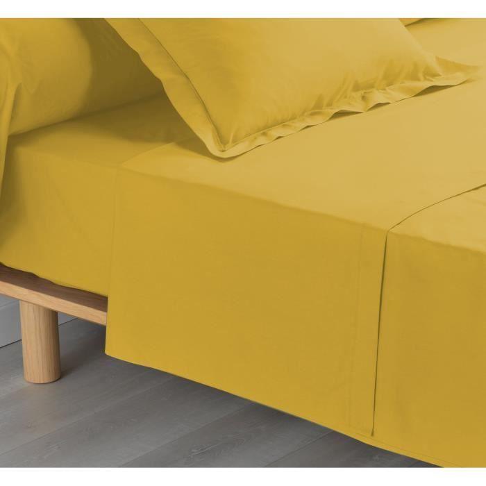Drap plat - Coton - Ocre - 180x290cm - Lavable - Doux et souple