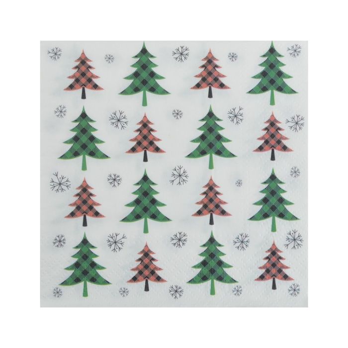 Lot de 20 serviettes en papier Sapins vert et rouge