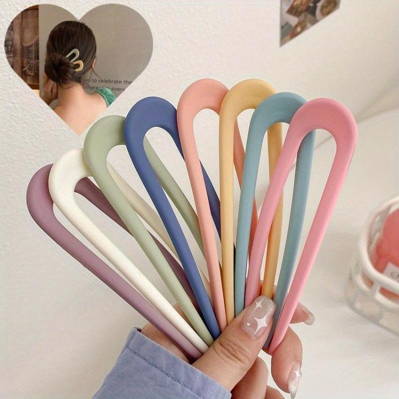 Модные палочки для волос конфетного цвета для женщин, заколки для волос в форме ракушки, 1 шт., минималистичные шпильки в форме U для девочек, головные уборы для создания пучков