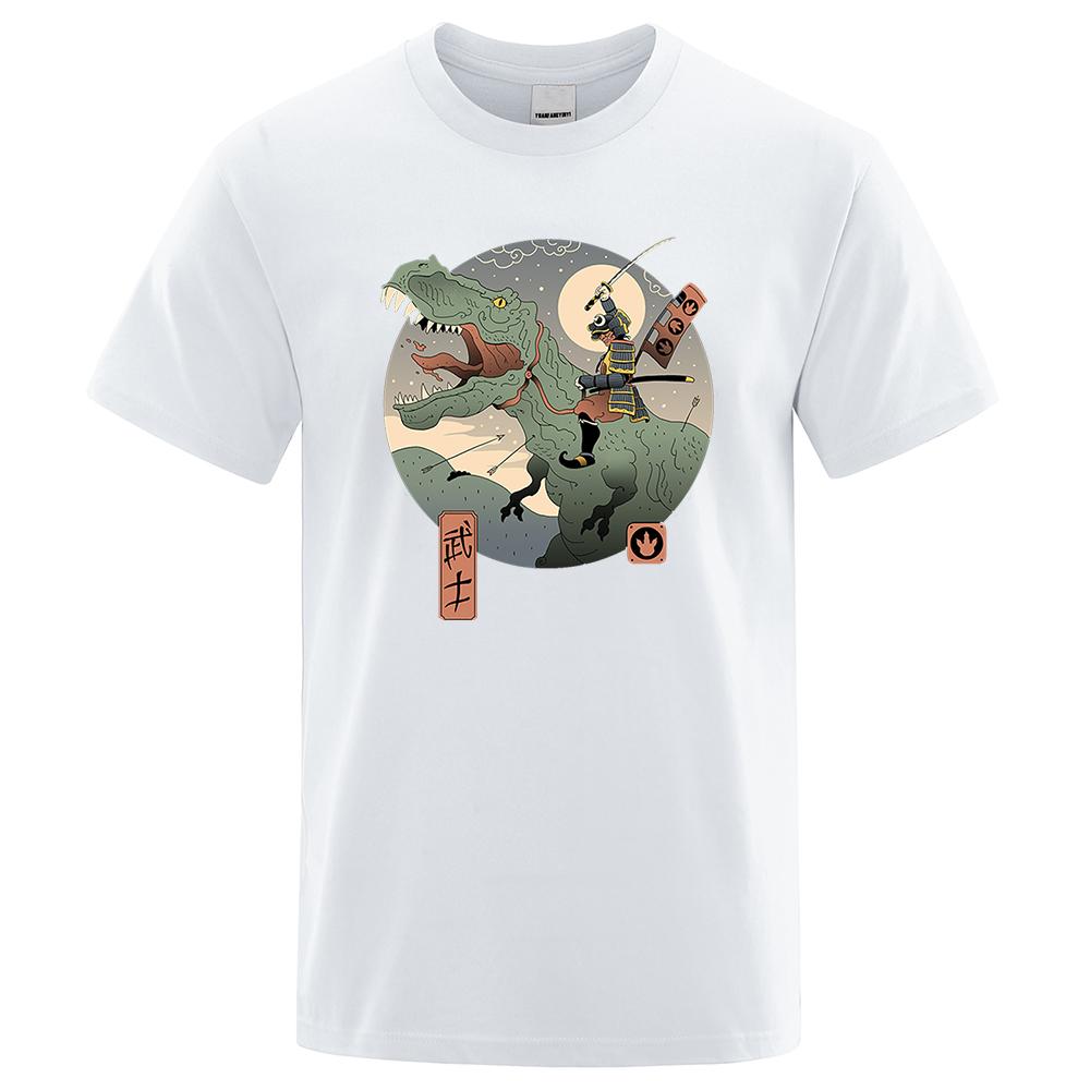 Японская одежда самураев в стиле Харадзюку Ukiyo E Юрского периода, мужская мода, уличная свободная футболка, футболка большого размера, хлопковая футболка