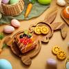 Поднос для пасхального кролика, деревянная тарелка для еды, сервировка фруктов, хлеб, деревянный весенний декор, детские украшения для торта, пасхальные принадлежности