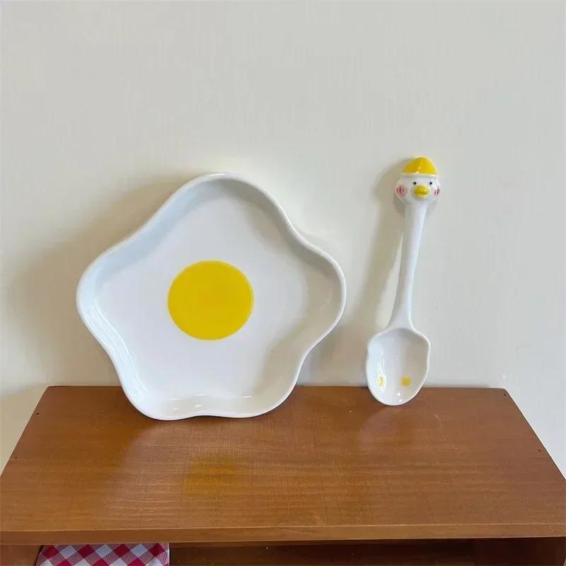 Корейская милая керамическая тарелка в форме яйца, креативное нестандартное блюдо для приготовления завтрака, фруктового салата, столовой посуды, закусочных тарелок, кухонных принадлежностей
