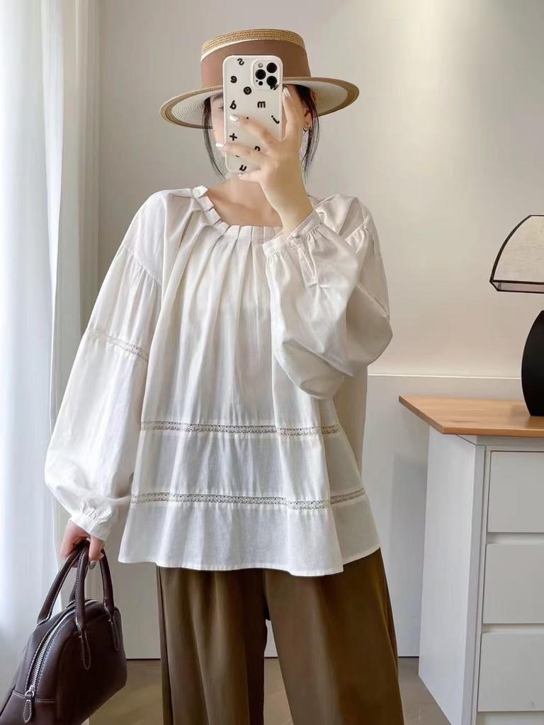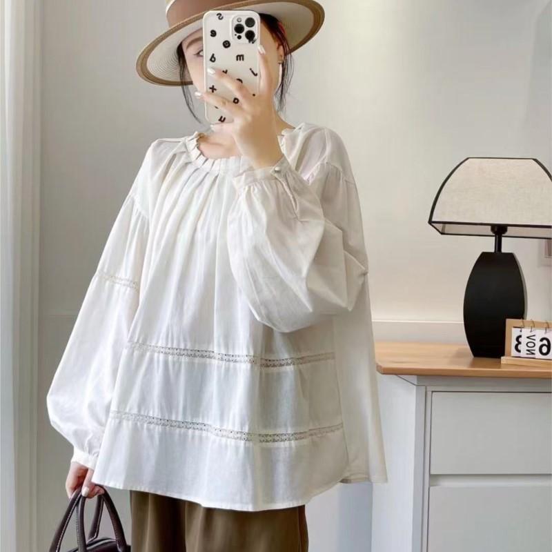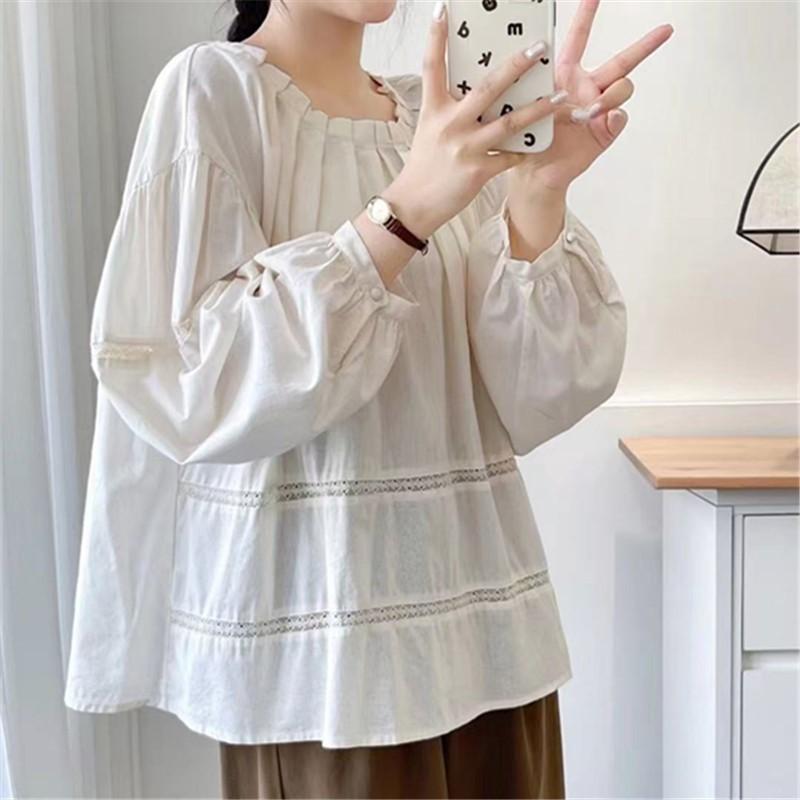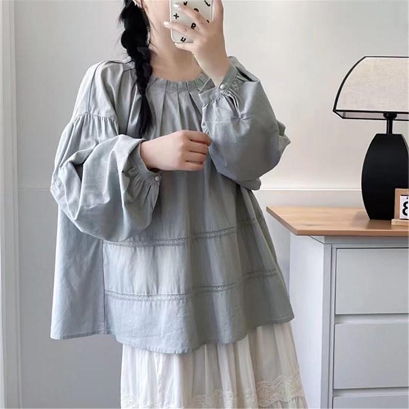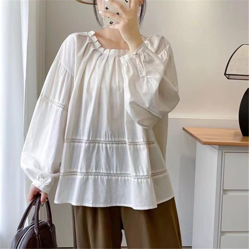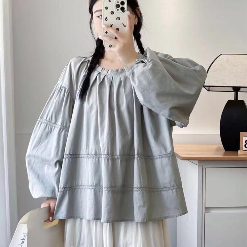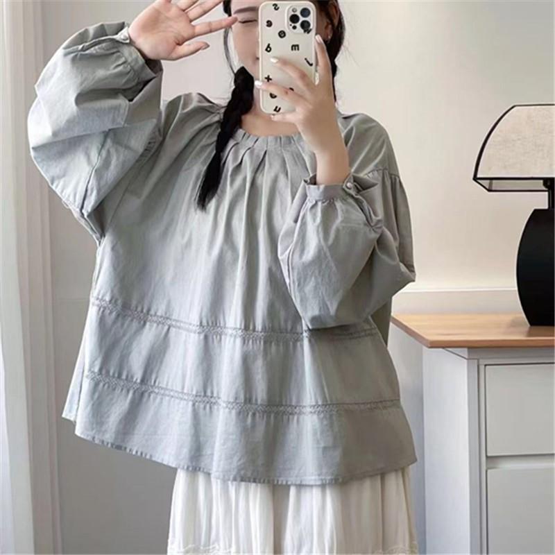 Johnature Топ с круглым вырезом, женский, весенний, вырез, свободная, сшитая, японская, лесная, с защипами, плиссированная, с длинными рукавами, рубашка