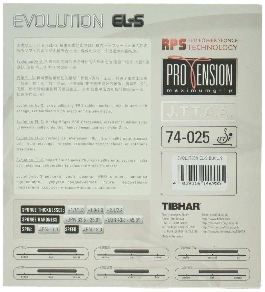 TIBHAR Накладка для настольного тенниса Evolution вращающаяся с высоким натяжением BT146955 черная EL-S 1.9