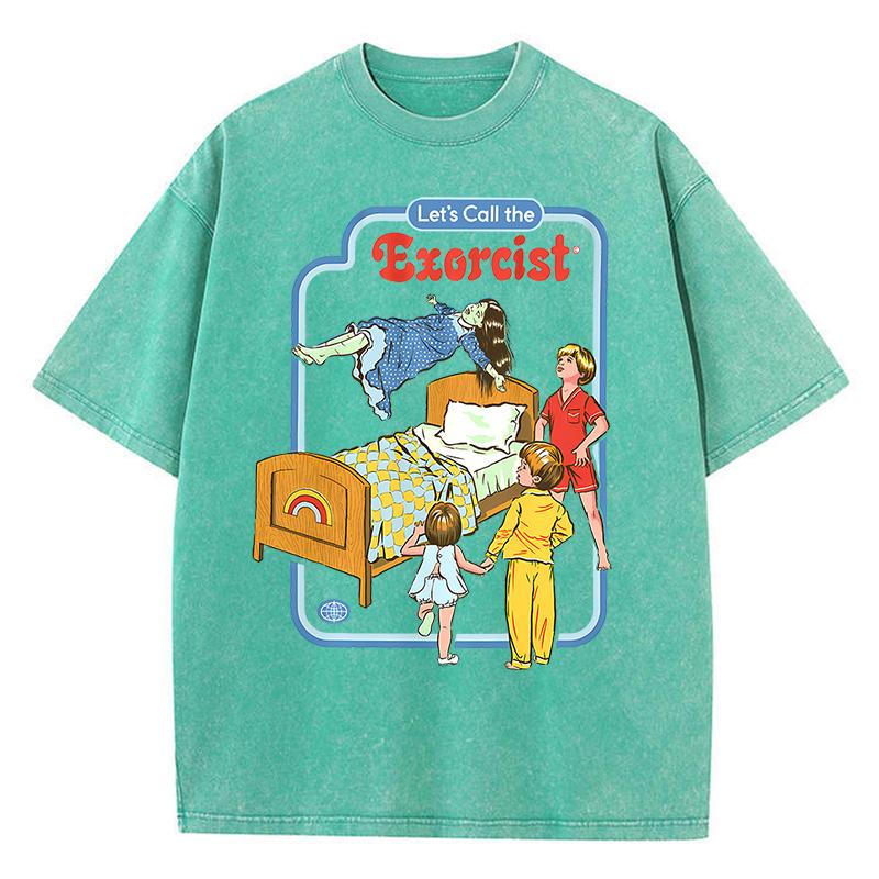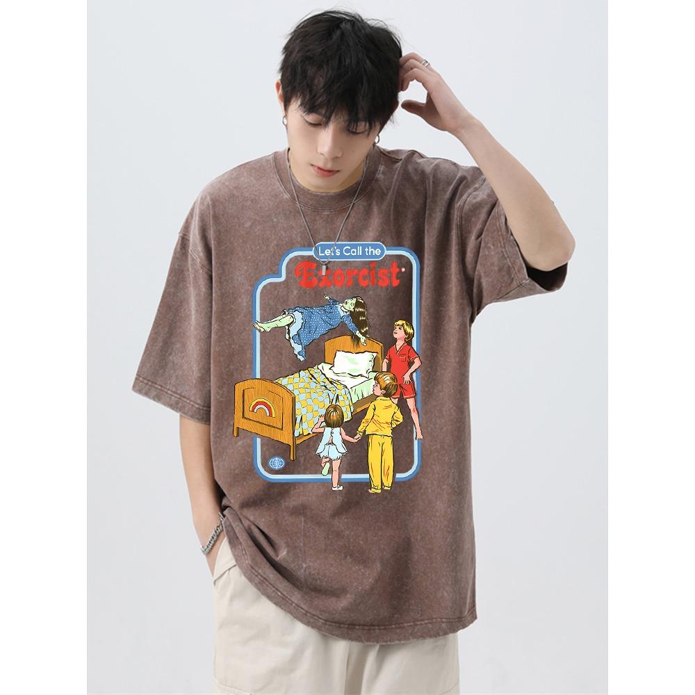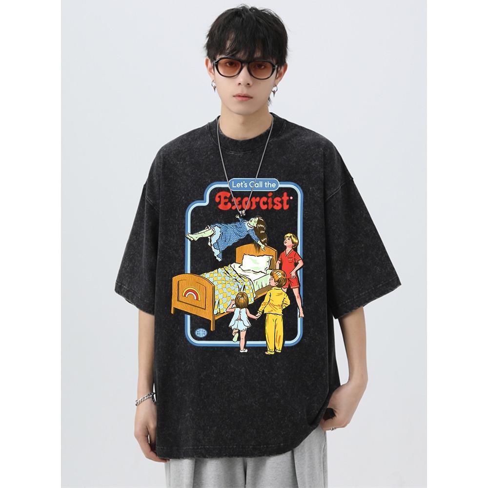 Давайте позвоним экзорцисту Мужские футболки в стиле ретро, стираные футболки, свободные футболки, хлопковая дышащая футболка, свободные топы
