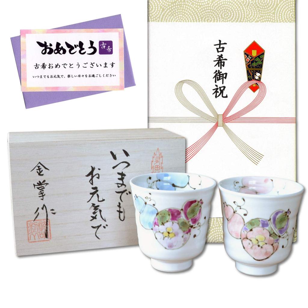 Празднование древнего талисмана на удачу подарок для хорошей пары изделий Арита, подарочная карта с шестью цветами и открытка с сообщением, деревянная коробка, время, здоровье, чашки, пара