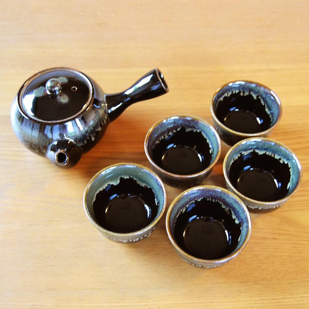 Чайная утварь Японская Арита Сделано в Джет U Чайник Чай из керамики Набор, Чай, Посуда, Япония, Стильный, Черный, Утварь,