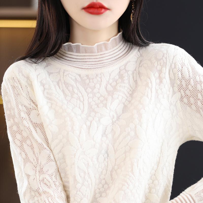 Весенне-осенний женский кружевной топ крючком, французская элегантная трикотажная нижняя рубашка с внутренней темперацией