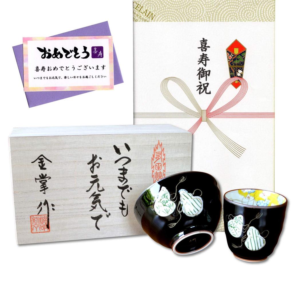 Талисман на удачу в честь праздника Кидзю, подарок на добро, чайная посуда Арита, чаша для чая и риса, шесть тыкв, открытка с посланием из Кидзю, деревянная коробка, подарок, здоровье, чашка, миска, набор,