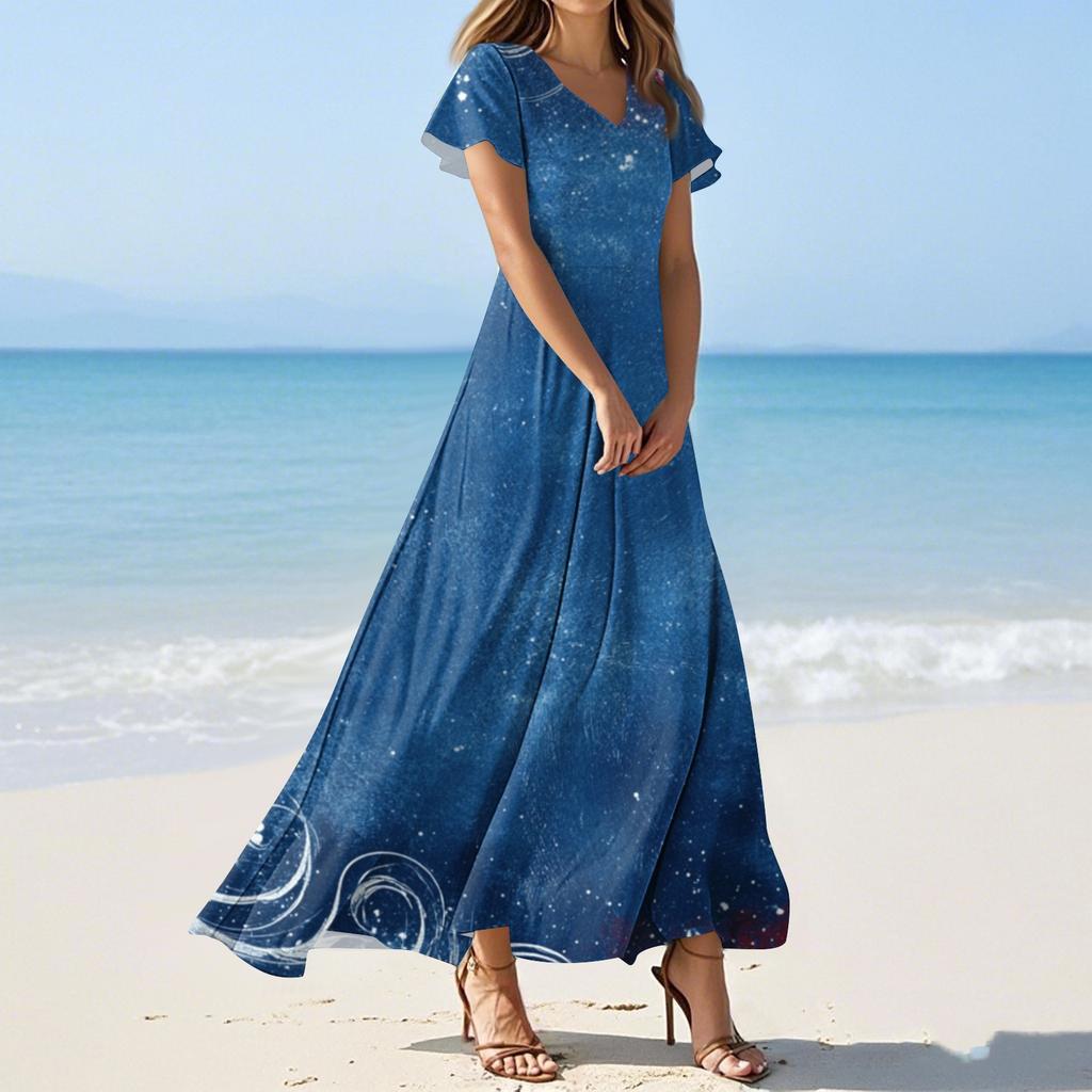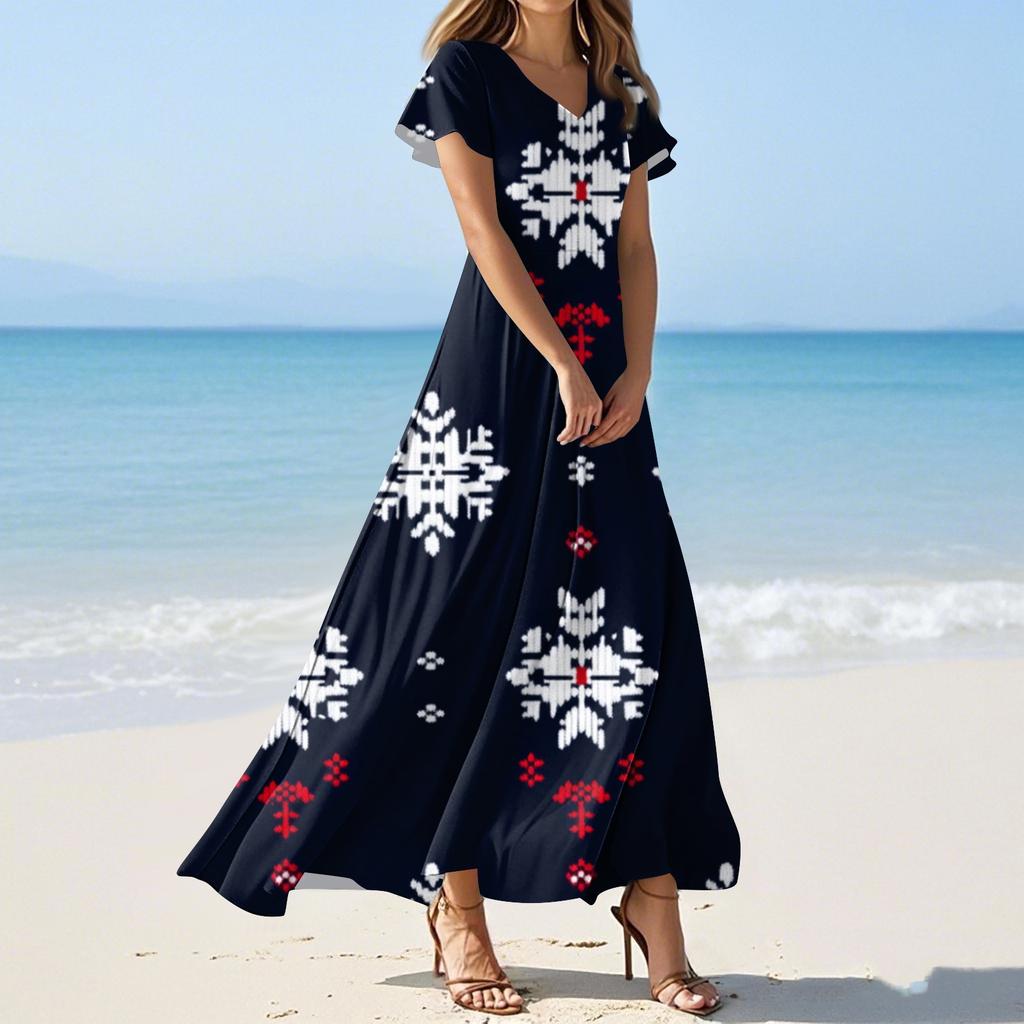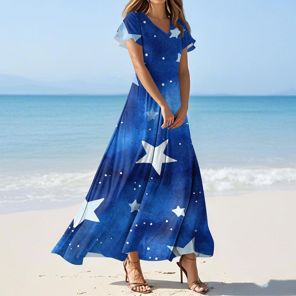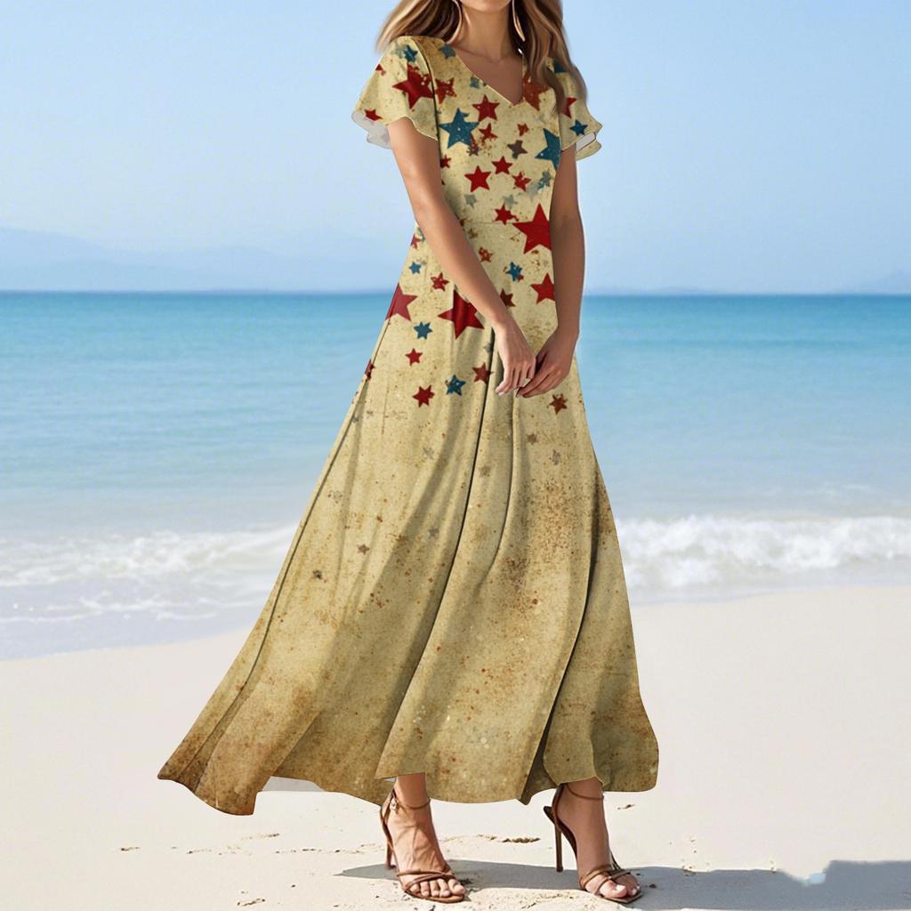 Женские летние повседневные модные платья с принтом ко Дню независимости, платья с коротким рукавом и V-образным вырезом