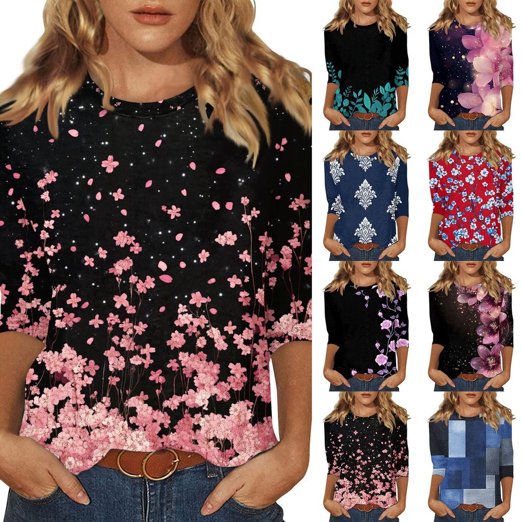 Женский топ с принтом и круглым вырезом, рукавом 3/4 — купить товар онлайн с бесплатной доставкой до всему миру!