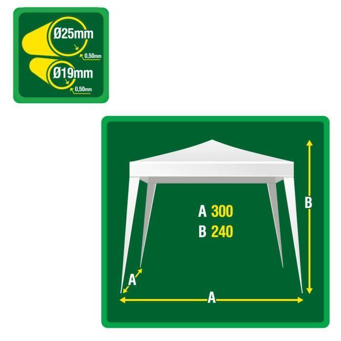 Gazebo pliant en polyester UV50 blanc 300x300x240 cm Aktive Beach