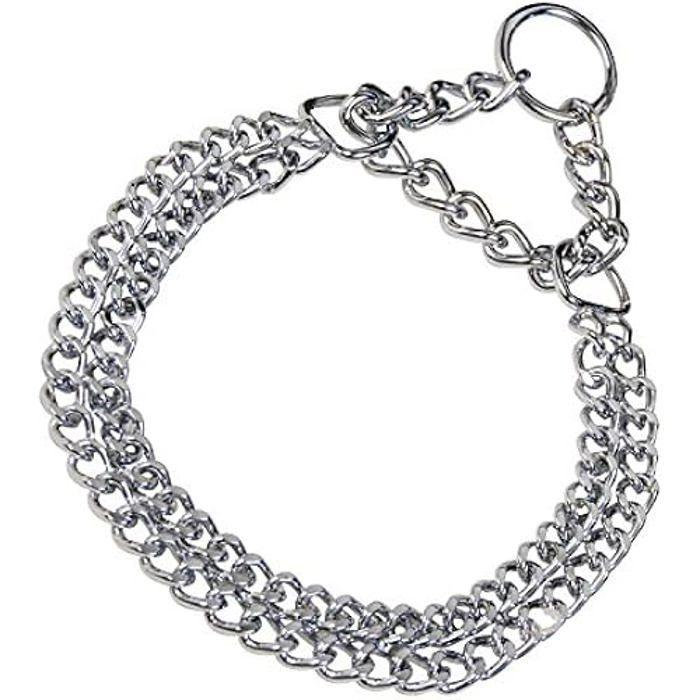 Collier double pour chien - HERM SPRENGER - Acier plaqué chrome - 2 mm d'épaisseur - Argent - Taille moyenne