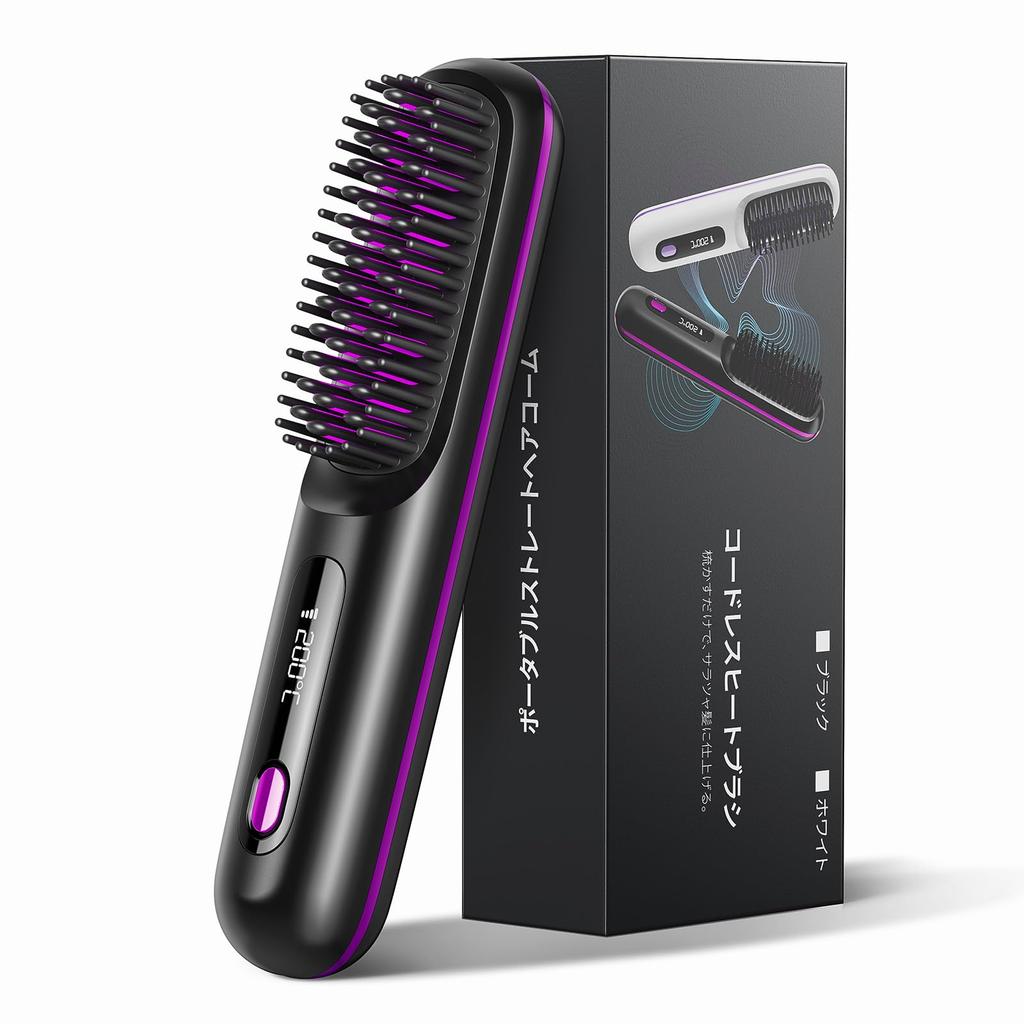 Тепловая щетка [модель Evolution 2024] Беспроводная щетка-утюг с прямыми отрицательными ионами, антистатический цифровой дисплей, аккумулятор Type-C, 160–200 ℃, зарядка через USB, 3 уровня регулировки температуры, керамическое покрытие, легкая прямая челка, быстрый нагрев, легкий портативный, предотвращение ожогов, уход за волосами, японское руководство по эксплуатации, в комплекте, подарок на день рождения унисекс (черный)