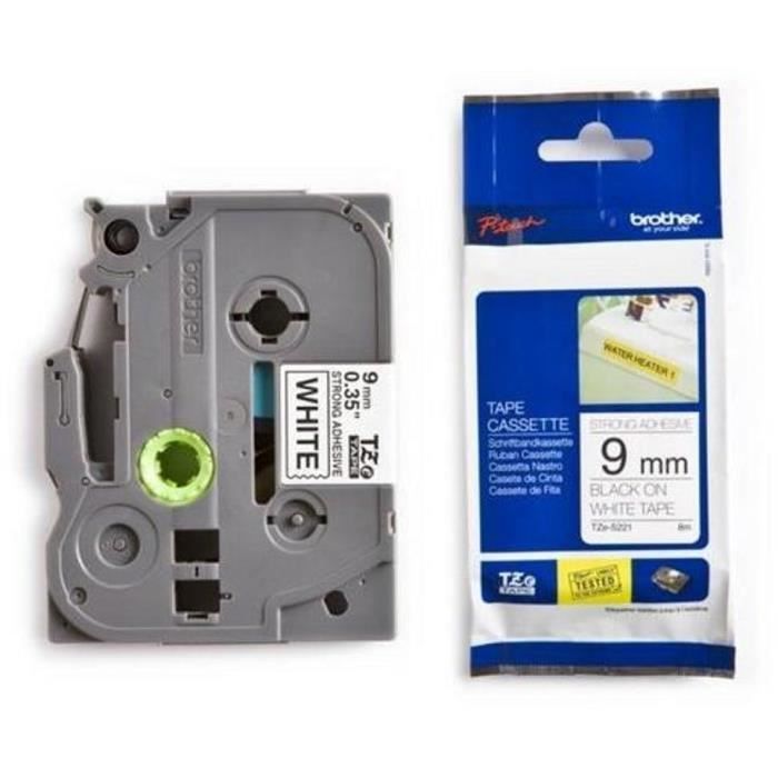 Ruban laminé BROTHER P-TOUCH TZE-S221 - Noir / Blanc - 9mm - Adhésif extra fort