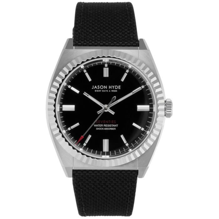Montre homme JASON HYDE UNO JH10025. Fashion. 50. Noir. Argent. Rond. Quartz. Analogique. Acier inoxydable. Boucle Ardillon. Textile