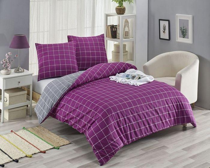 Parure de lit - TRENDY - Violet - 220x240 cm - 80% Coton - Imprimé