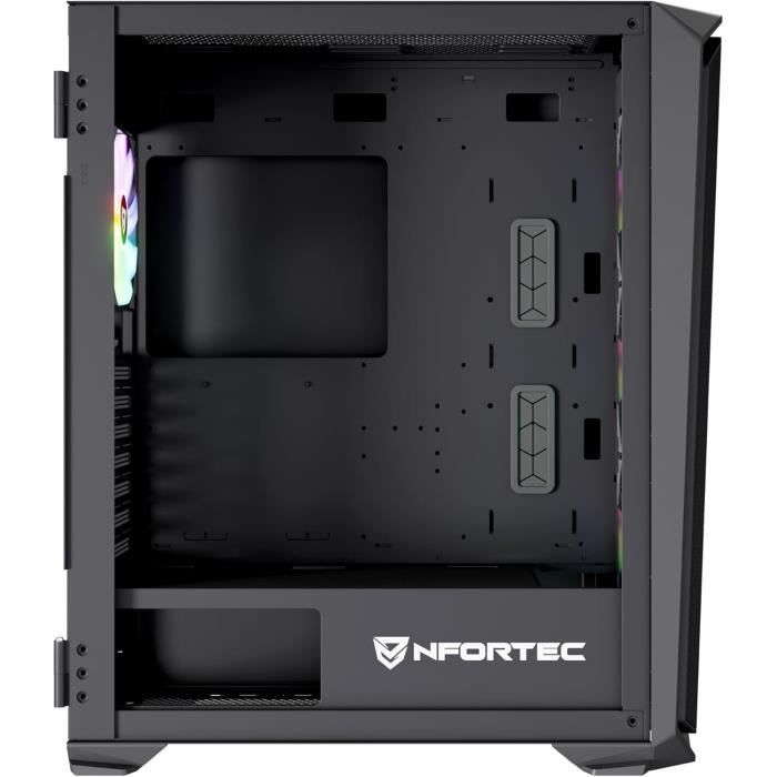 Nfortec - KRATER X Boîtier PC Gaming Mid Tower ATX,4x 120mm Ventilateurs ARGB inclus,Mesh frontal,Verre trempé latéral,Noir
