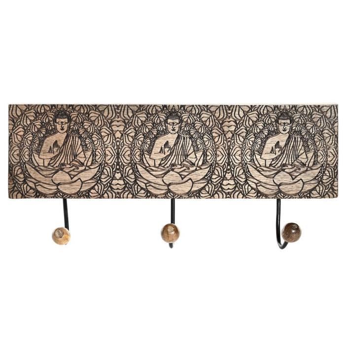 Portemanteau - Naturel - Métal - Bois de manguier - 38x6x18 cm - Motif Buda Oriental