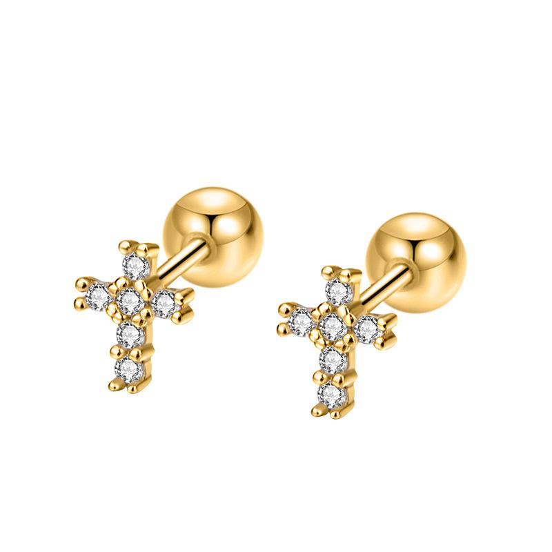 Серьги с бриллиантами, инкрустированными крестом, серьги-гвоздики, не снимая серьги для прокалывания ушей, легкие и роскошные