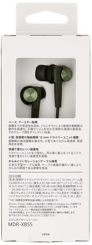 Sony Проводные наушники модель с тяжелыми басами Внутриканальные зеленые G MDR-XB55 MDR-XB55
