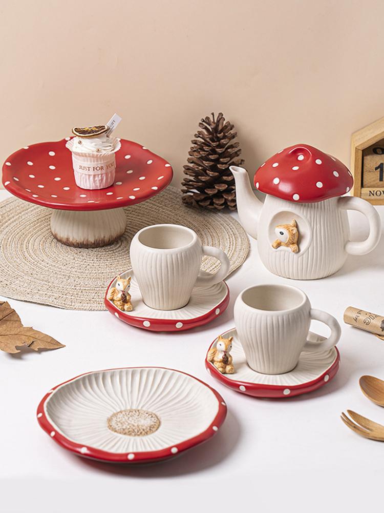 Керамическая кружка для кофе с грибом и крышкой, мультяшный чайник для воды, чашка для молока на завтрак с блюдцем, кухонный кувшин, посуда для питья, подарок на день рождения