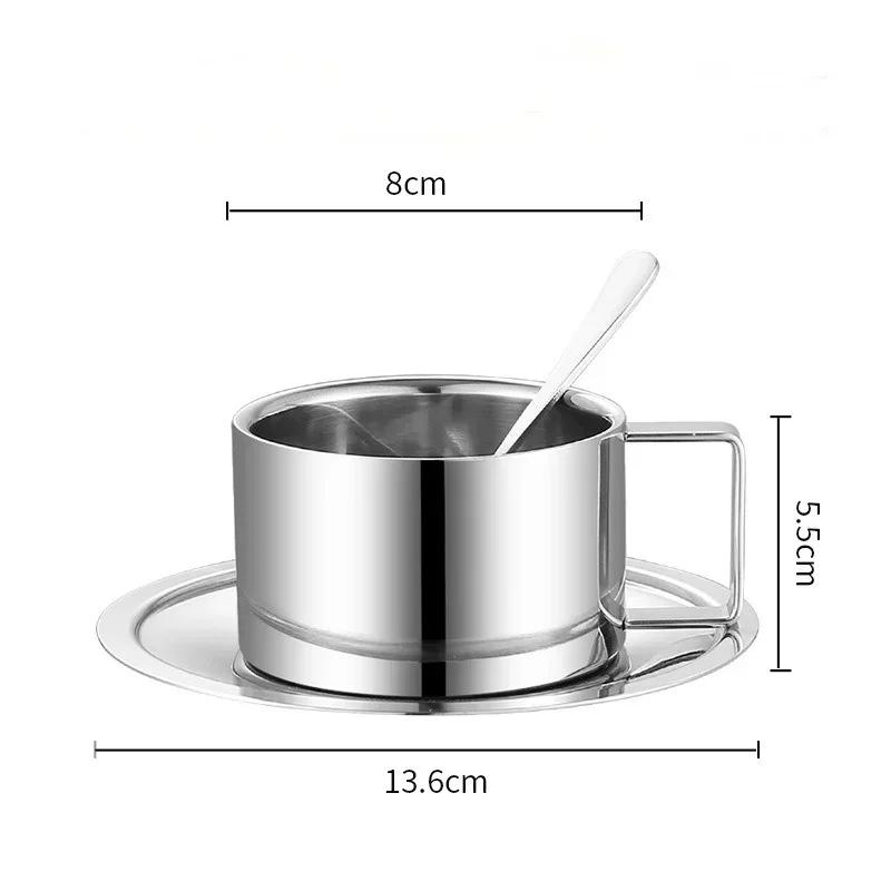 Чашка для кофе из нержавеющей стали с ложкой для посуды, двойная термостойкая кружка для капучино, посуда для напитков, кухонные аксессуары для кафе