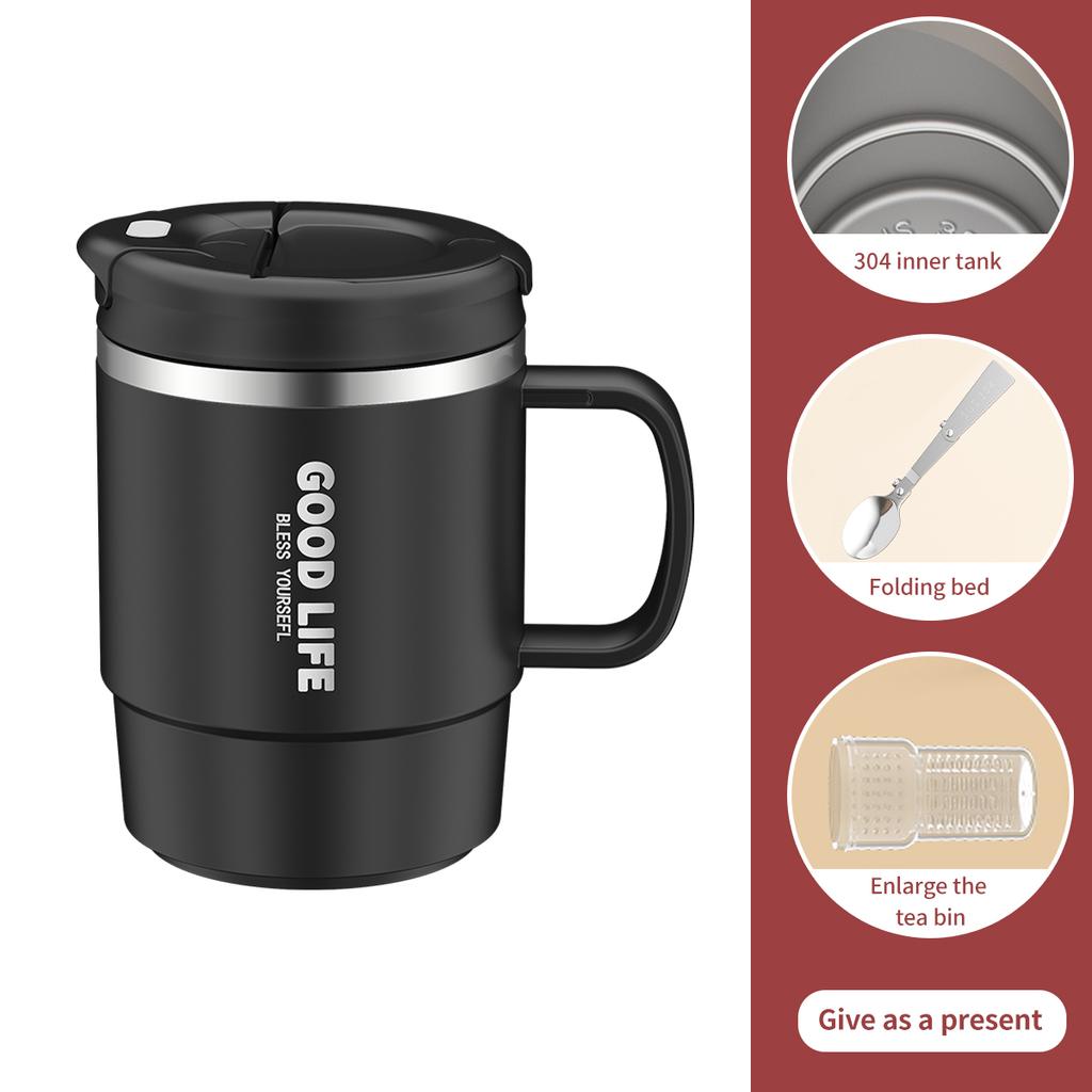 WORTHBUY 304 Нержавеющая сталь кружка для кофе с крышкой, двухстенная изолированная кружка для воды с ручкой и крышкой, термостойкая посуда для напитков