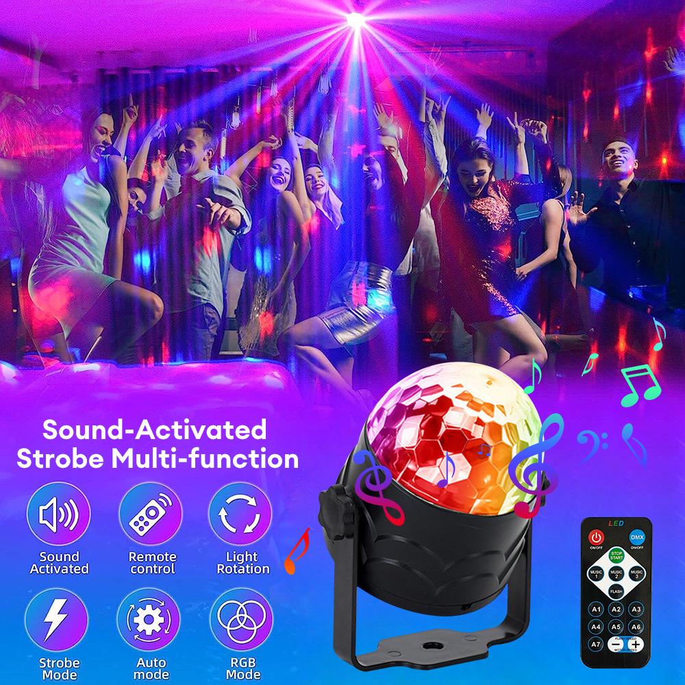 Диско-шар со звуковым управлением, светодиодное освещение, атмосфера диско-машины, украшение, USB-цветной пульт дистанционного управления, сценическое освещение