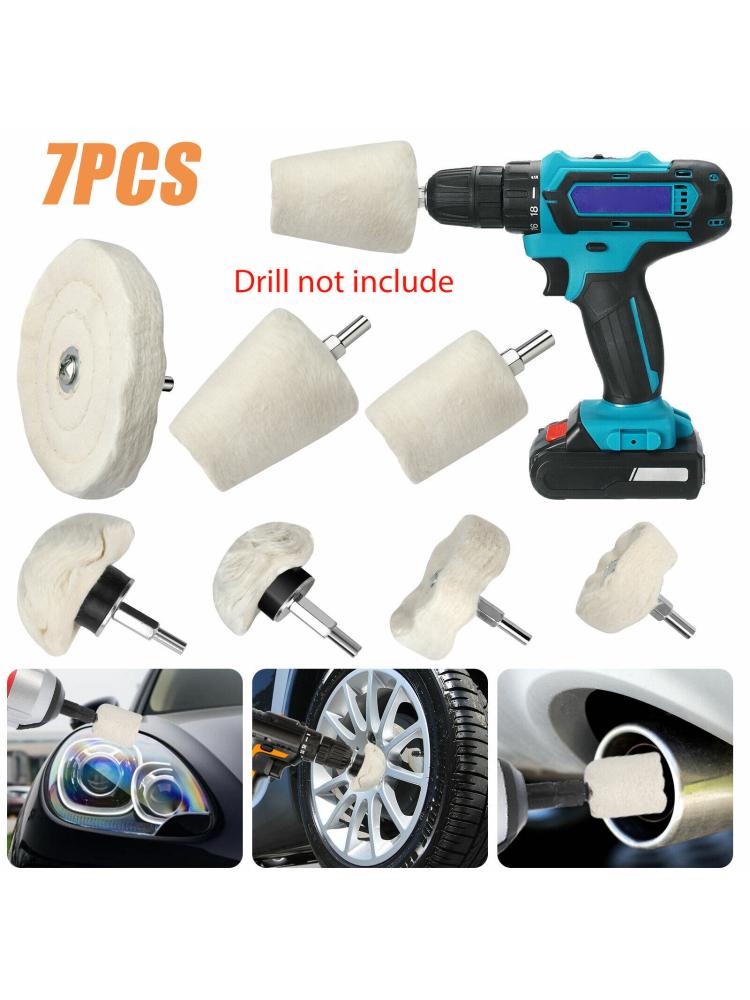7 шт., комплект байковых полировальных кругов, полировальные подушечки с шестигранными валами 1/4 дюйма, полировальная швабра, шлифовальная головка для дрели
