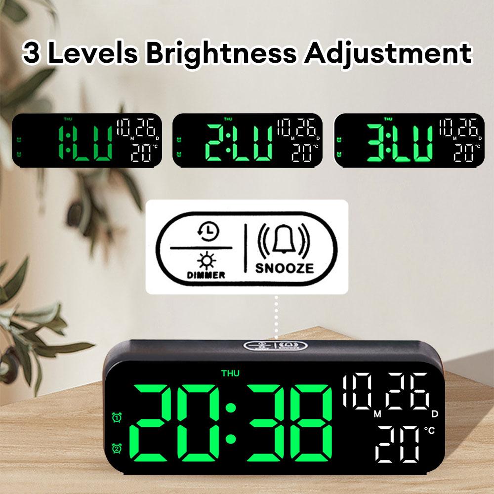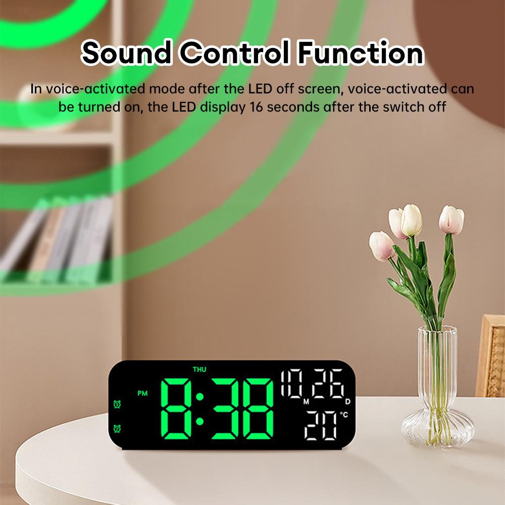 Большие цифровые часы с температурой, датой, неделей, двумя будильниками 12/24 ч. Светодиодный будильник с голосовым управлением, настольные часы для спальни
