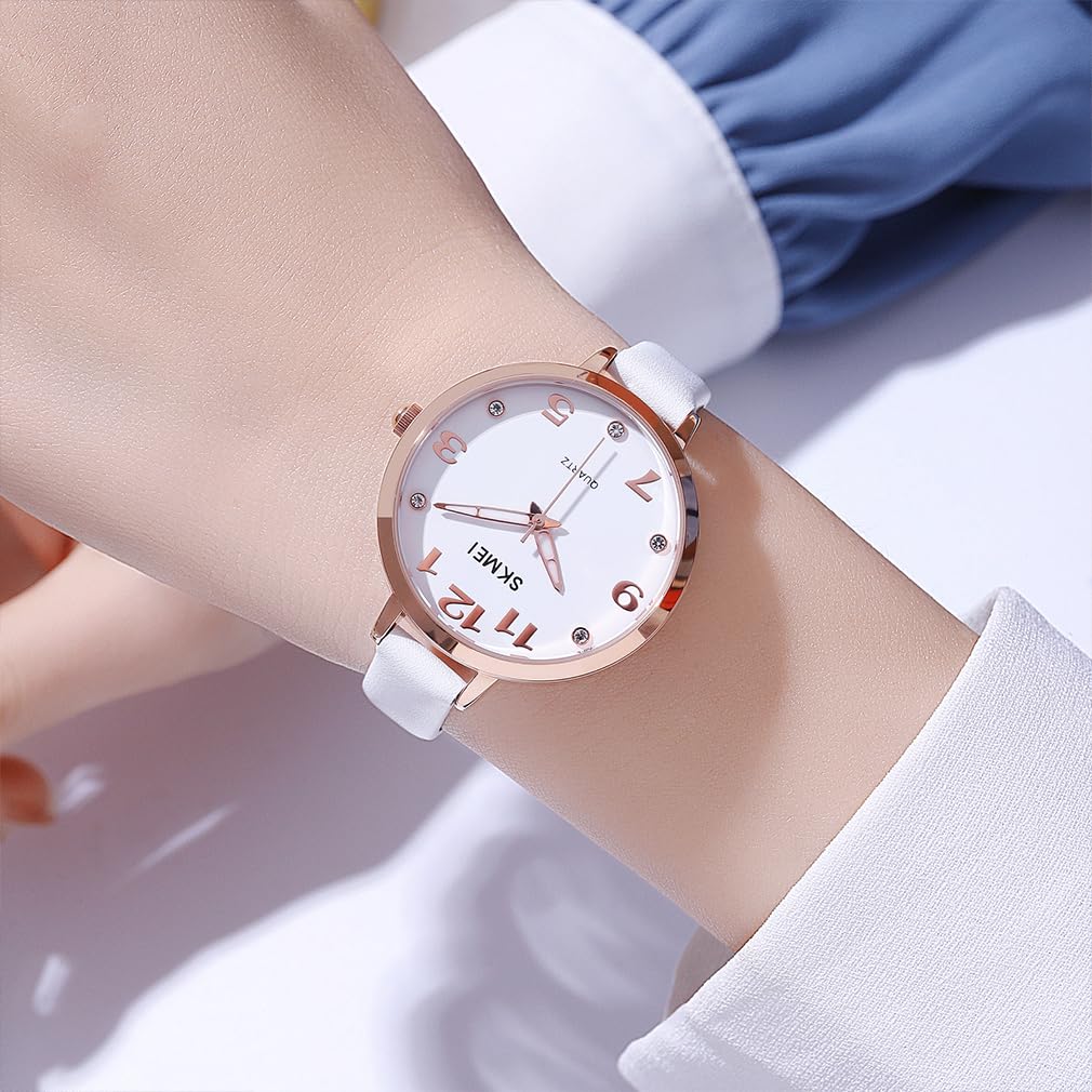 Женские часы SKMEI. Простые симпатичные женские повседневные часы, модный полированный круглый корпус, ремешок из натуральной кожи с застежкой-пряжкой. Привлекательны и превосходны, поскольку тщательно спроектированы, чтобы выдержать испытание временем.. Женские часы легкие арабские цифры легко читаемый циферблат водонепроницаемые: Женские часы Дешевые Популярные; Знайте время, чтобы организовать свои ежедневные задачи. Работаем эффективно и быстро. Водонепроницаемость до 30 метров 3ATM, водонепроницаемость для мытья рук, плавания, ежедневного использования, не подходит для подводного плавания. уведомление: Не нажимайте кнопки под водой.. Женские часы с кожаными ремешками. Недорогие и популярные. Модные часы используют японские кварцевые механизмы стабильного качества.. Красный, черный, коричневый, белый ремешок, стойкость цвета, ремешок для часов из натуральной кожи, дышащий и удобный для ношения, идеально подходит для ношения на руке. Женские часы ультратонкие легкие простые стильные милые, L2028 женские часы стандарты: Толщина 8,8 мм, диаметр 35 мм, ширина стальной ленты 10 мм, длина 225 мм. Вес женских часов: 27.1g.Женские часы