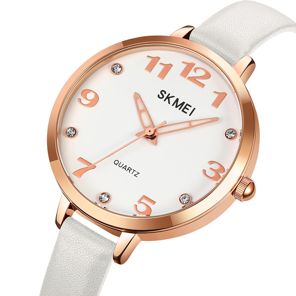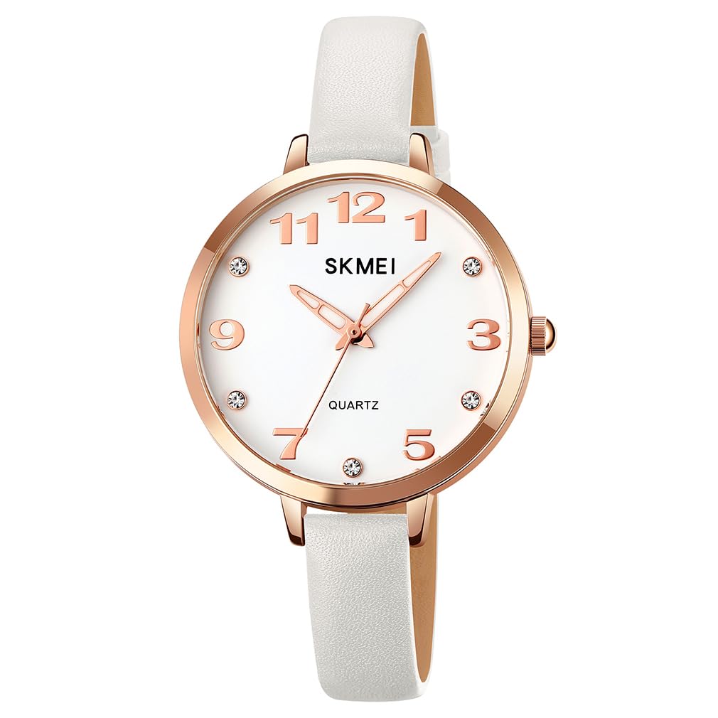 Женские часы SKMEI. Простые симпатичные женские повседневные часы с модным полированным круглым корпусом, ремешком из натуральной кожи с застежкой-пряжкой. Они привлекательны и превосходны, поскольку тщательно спроектированы, чтобы выдержать испытание временем.