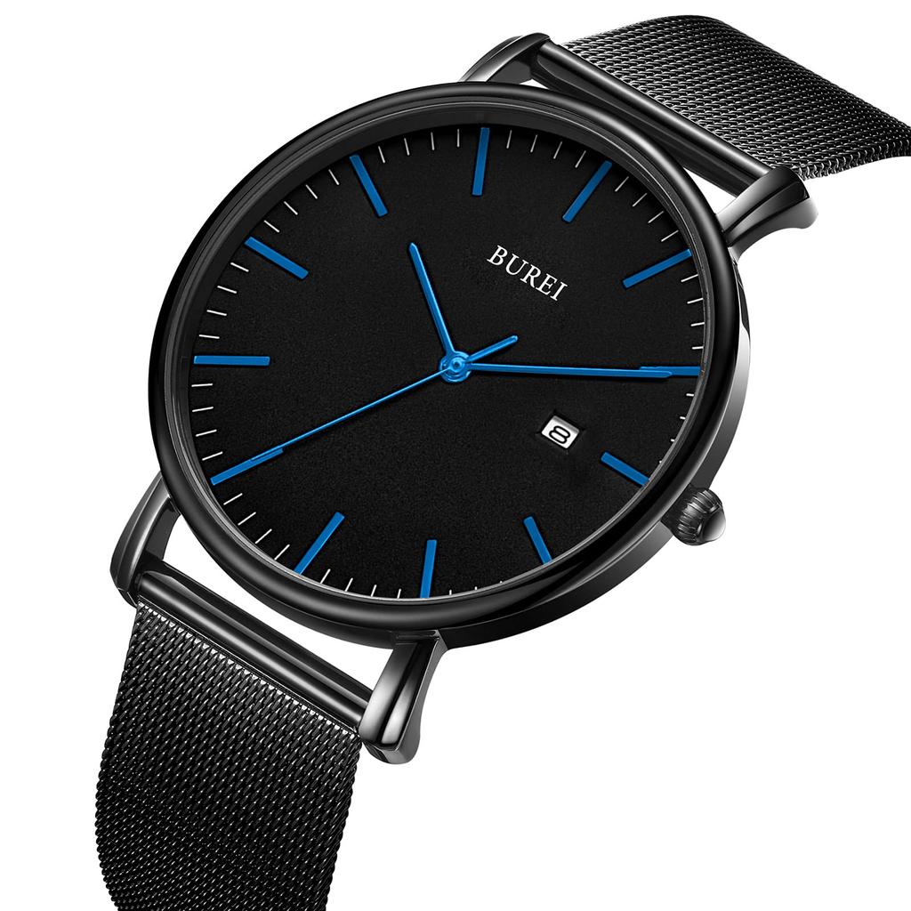 Часы простые водонепроницаемые аналоговые популярные часы бренда стильные миланские сетчатые часы W14 [BUREI] мужские мужские