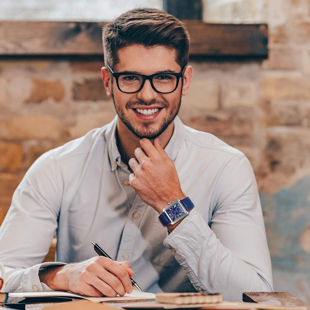 Часы JewelryWe Watch с римским циферблатом и кожаным ремешком для поездок в школу, синие, мужские