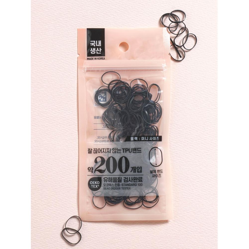 Мини-ремешок из ТПУ DAISO (200 штук) в черном цвете предназначен для основных потребностей в аксессуарах для волос. Ремешки изготовлены из высококачественного ТПУ материала, обеспечивающего долговечность и гибкость.. Эти резинки, характеризующиеся низкой эластичностью, особенно подходят для коротких или тонких волос.. Они сертифицированы Oeko-Tex, что указывает на отсутствие в них вредных веществ..