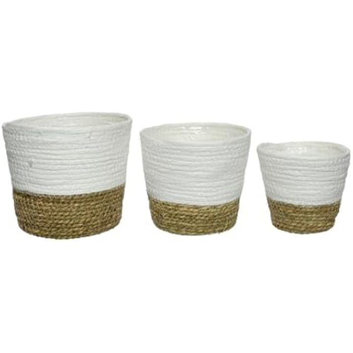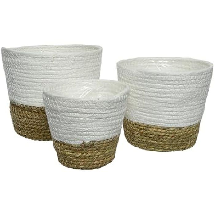 Lot de 3 pots de fleurs tressés - KSD - 13 à 20 cm - Style bohème - Blanc naturel