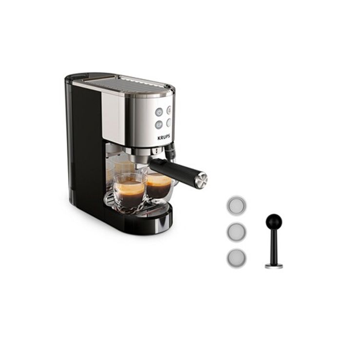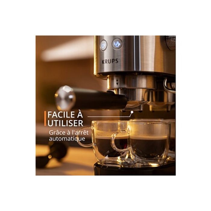 Krups Machine expresso à pompe, inox, Design compact, Arrêt automatique, Thermoblock XP444C10