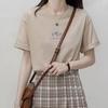 Летняя женская футболка с круглым вырезом, свободная повседневная однотонная футболка с ботаническим принтом и коротким рукавом