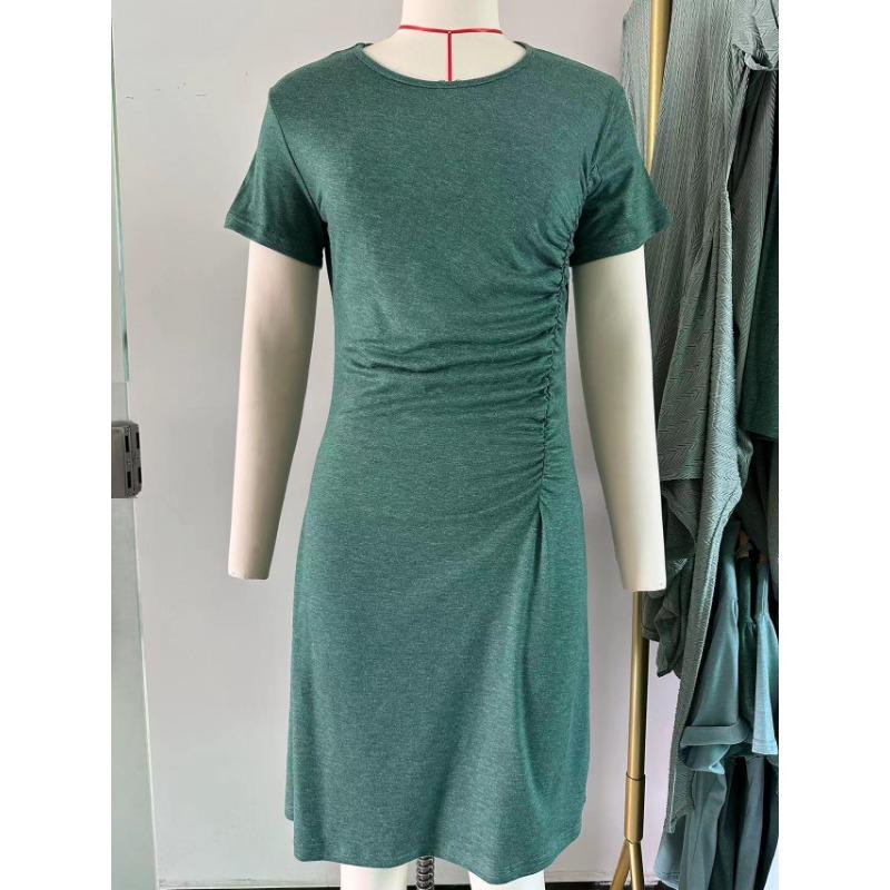 Летнее женское платье, новые однотонные плиссированные тонкие платья с круглым вырезом и короткими рукавами