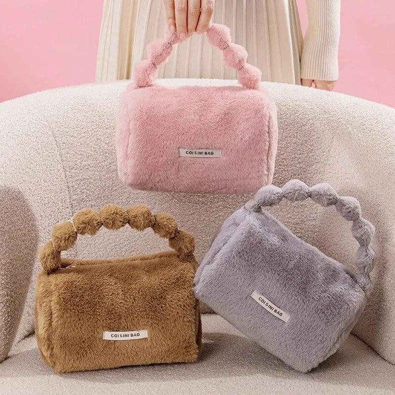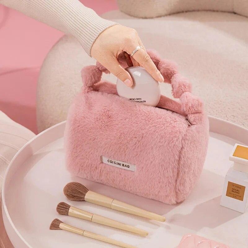 Модная милая плюшевая женская косметичка-тоут, дорожная косметичка, туалетный кошелек, органайзер, сумка для хранения, портативные косметички для девочек