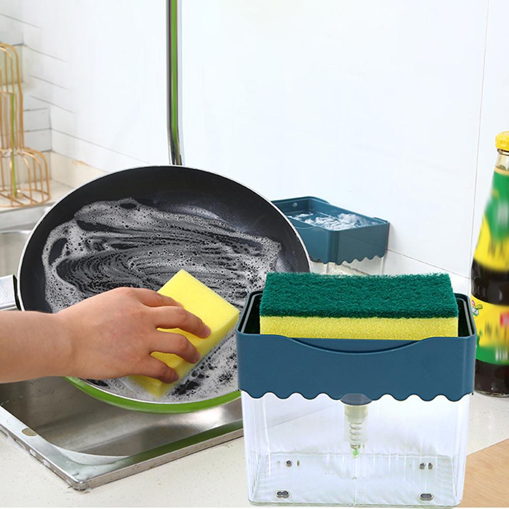 Дозатор для кухонного мыла, ручной пресс 2 в 1, коробка для жидкого мыла с держателем для губки, контейнер для жидкости для мытья посуды