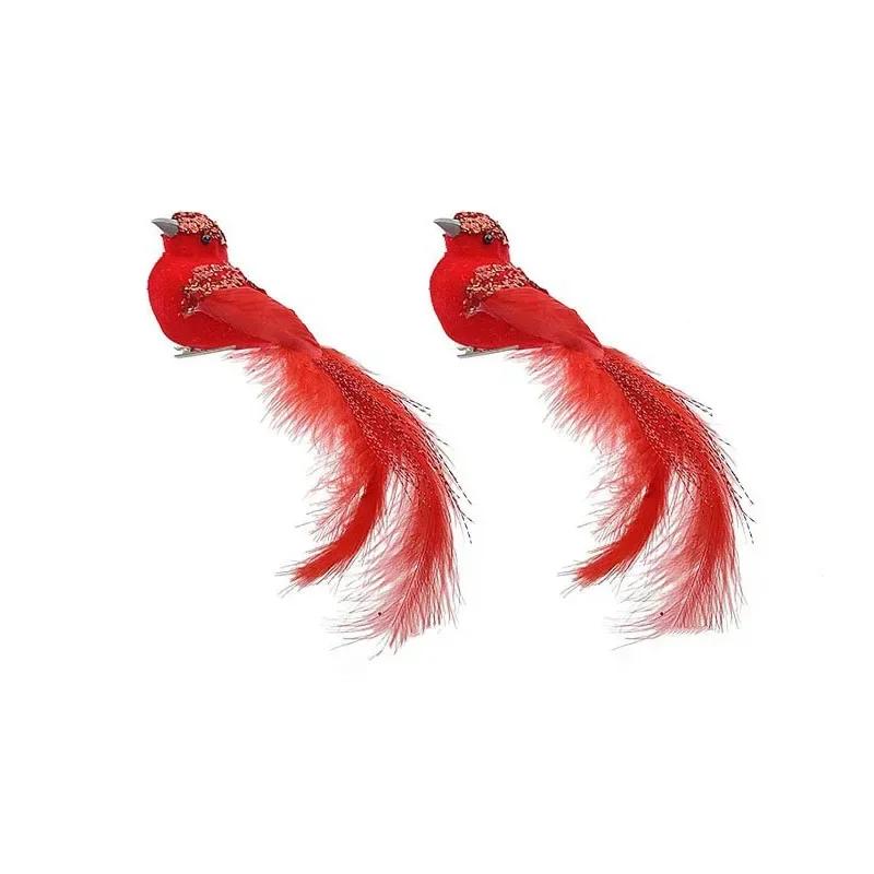 2 шт. имитация перьев птиц с зажимами для декора садового газона и дерева, ручная работа, фигурки красных птиц, праздничное украшение для дома