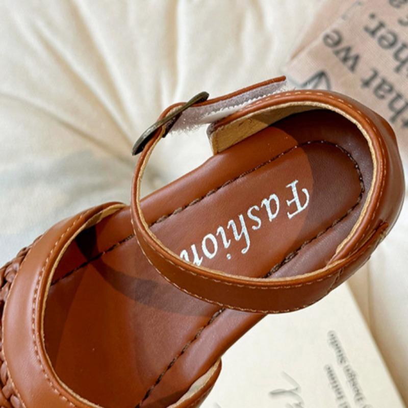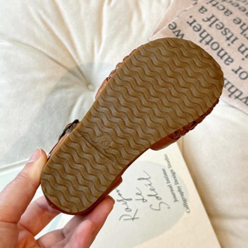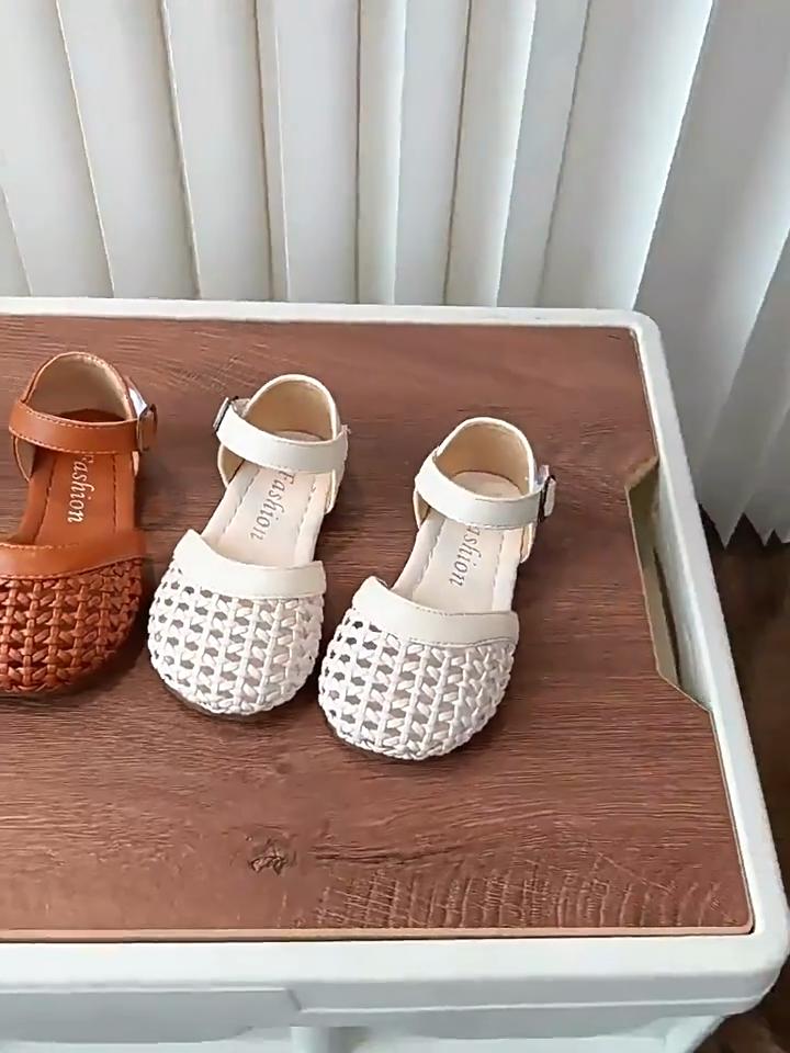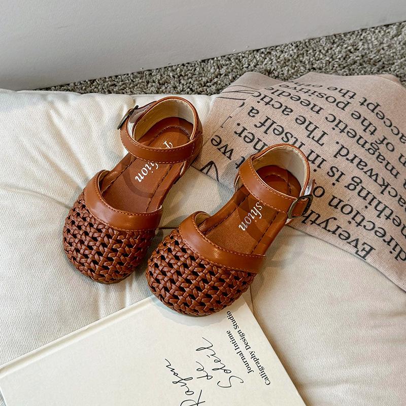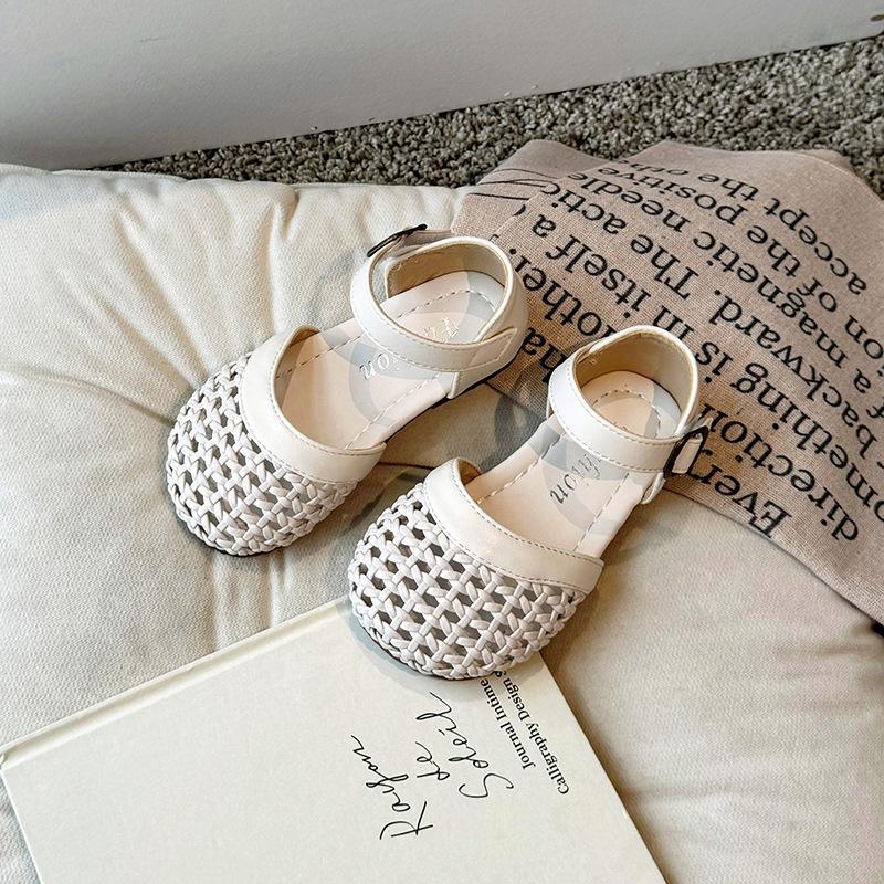 Летние сандалии для девочек, однотонные плетеные полые туфли, модная универсальная пляжная обувь
