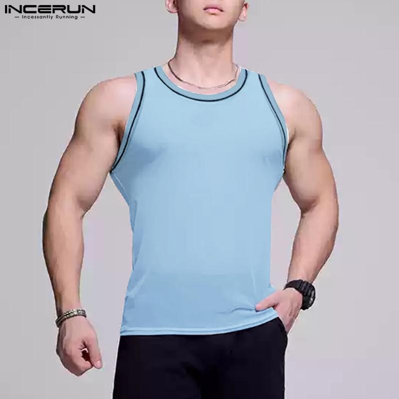 INCERUN Летние мужские сетчатые топы без рукавов с прозрачным плетением