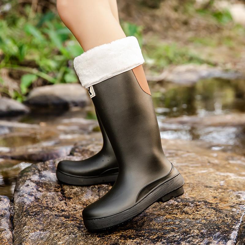 Женские хлопковые дождевики, модные высокие нескользящие резиновые сапоги, верхняя одежда, длинная обувь для ручья, водные сапоги, всесезонные водные сапоги, обувь для кемпинга