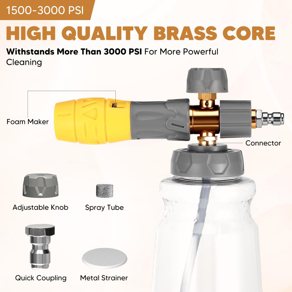 Сверхмощный пистолет-распылитель для пены для автомобиля, пенообразователь с широким горлом, регулируемый густой пенообразователь для мойки высокого давления, быстроразъемное соединение 1/4 дюйма
