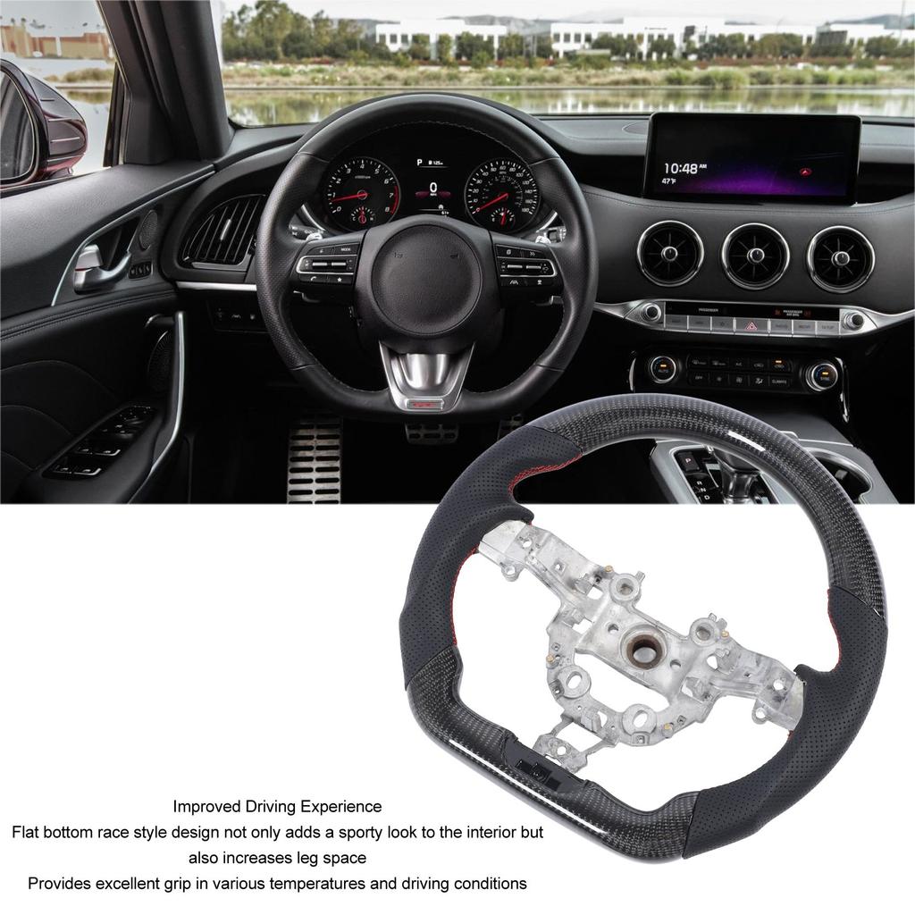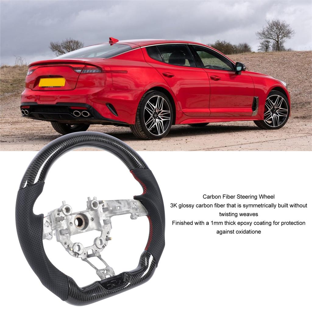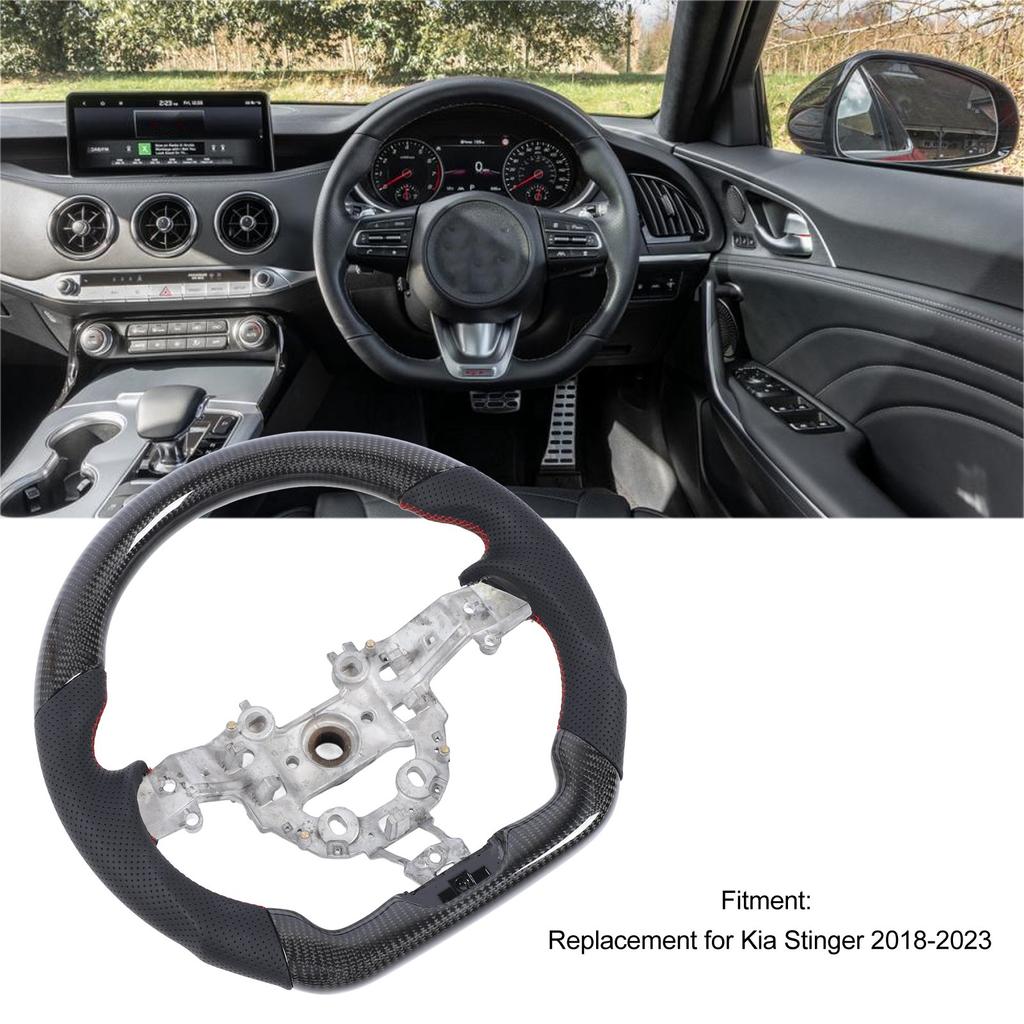 Рулевое колесо из углеродного волокна с перфорированной кожей и плоским дном, замена для рулевого колеса из углеродного волокна Stinger 2018–2024 гг.