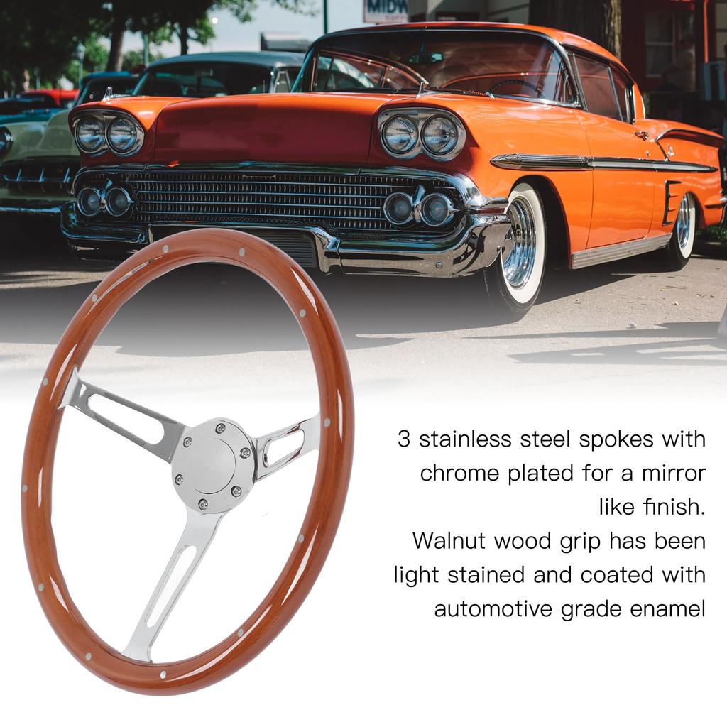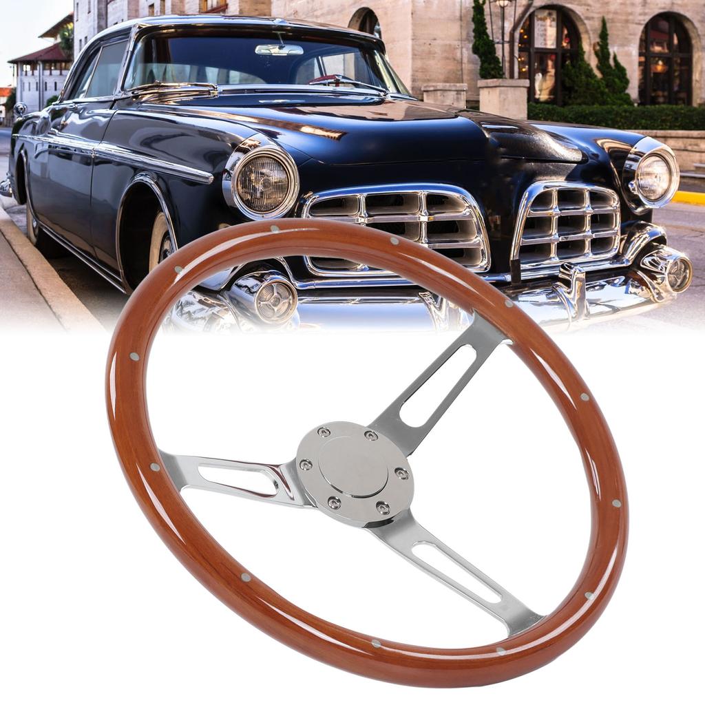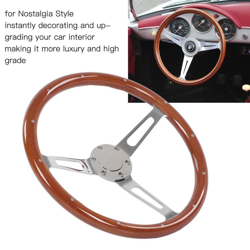 380 мм 15 дюймов Классический руль в сборе Ореховая ручка 3 спицы заклепки 6 отверстий Универсальная модификация Рулевое колесо Модификация