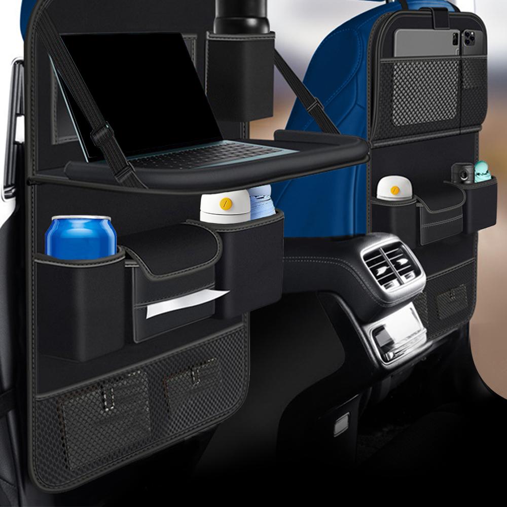 Органайзер для спинки сиденья автомобиля, вместительная сумка для хранения со складным лотком для планшета, искусственная кожа, многокарманная сумка-органайзер для автомобиля 64x45 см